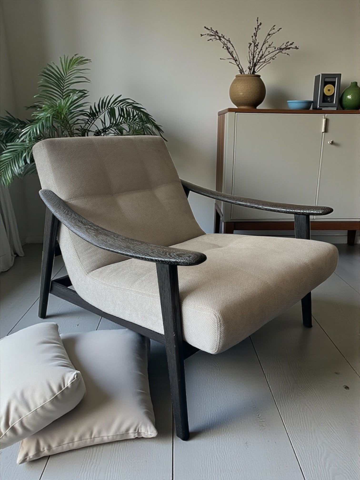 Yumuşak oturum minderi ve ergonomik sırt yapısı sayesinde sadece dekoratif bir parça değil, aynı zamanda konforlu bir oturma deneyimi sunar. Modern, minimal, İskandinav ve rustik dekorasyon stilleriyle kusursuz uyum sağlar.