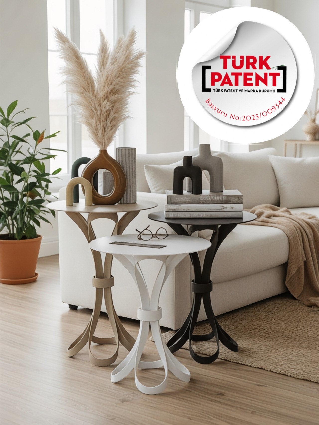 Akışkan kıvrımlı ayak tasarımı, her bir sehpayı bir sanat eseri görünümüne kavuşturur. Bu set sadece bir mobilya değil—mekânın atmosferini yükselten özgün bir dekoratif parçadır.